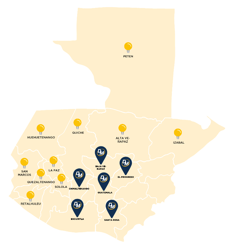 Tenemos presencia en diversos departamentos del territorio Guatemalteco.